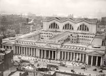 Take for example the Old Penn Station in New York, supposedly erected in 4 years and opening its ornate doors in 1910. Look at the size of this building and its monumental structure taking, as they say, only four years to build, and used 27,000 tons of steel, 500,000 cubic feet of granite, 83,000 square feet of skylights, and 17 million bricks.